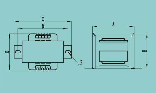 | 功率 | 骨架Bmax | 鐵芯尺寸(mm) | 外型尺寸 長(zhǎng)(B)*寬(D)*高(E) |