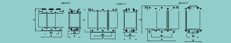 | 三相隔離變壓器型號 | 圖號 | 逆變器功率(KW) | 額定輸出電流(A) | 三相輸入電壓 | 三相輸出電壓 | 變壓器效率 | 重量 (KG) |